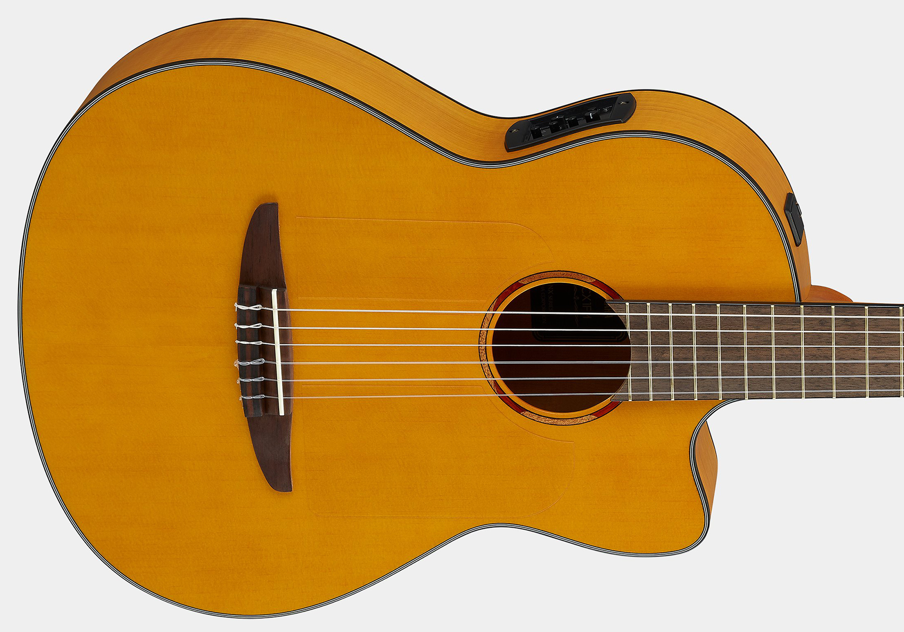 With top notch tonewoods (solid Sitka Spruce top, flame Maple back/sides, Walnut fingerboard), the YAMAHA NX Series NCX1FM full-size nylon acoustic/electric guitar features traditional body styles and proprietary preamp and pickup systems developed with the needs of live performers in mind.